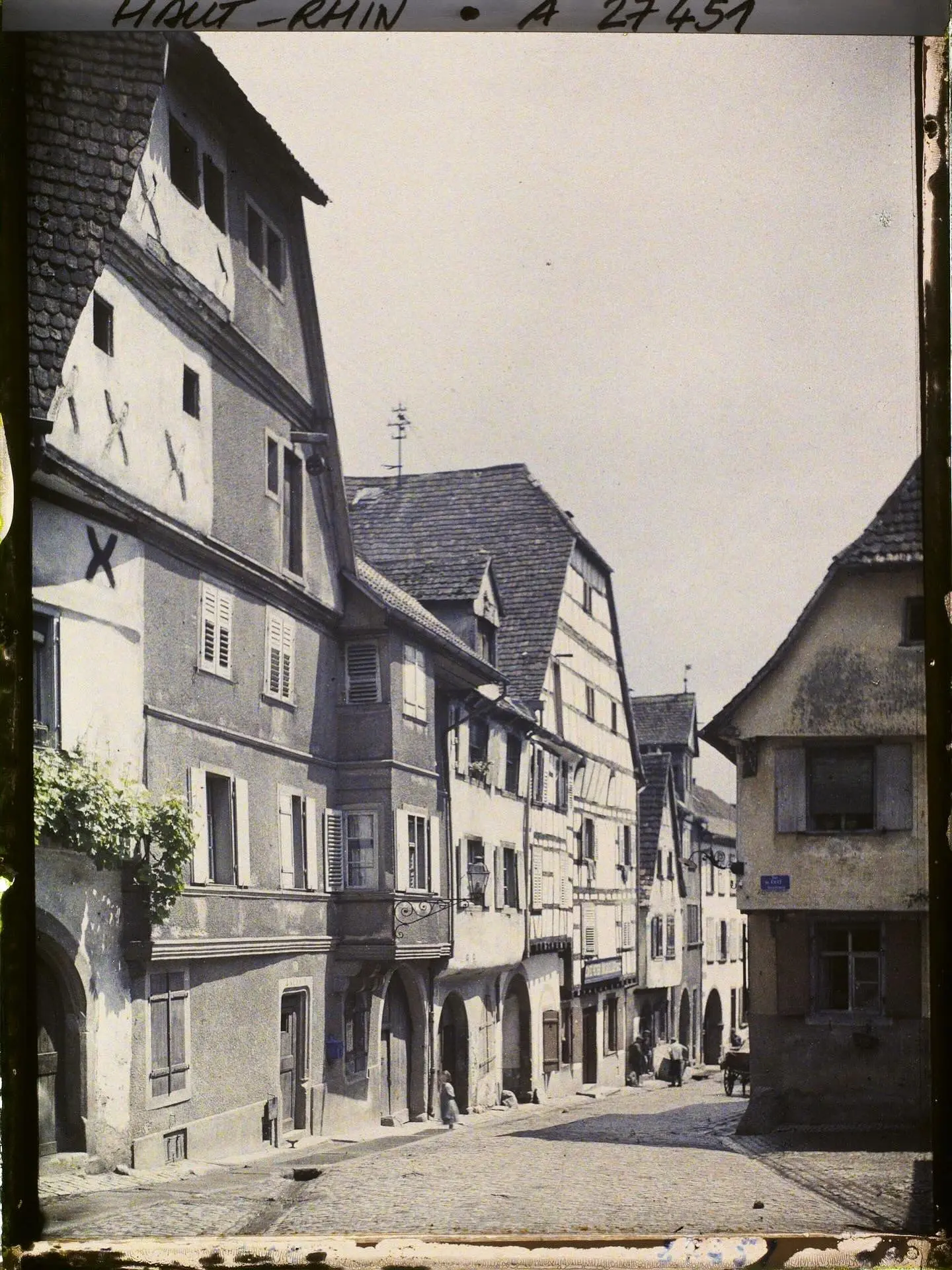 Cette photo est en… couleur ! Notez le bleu de la plaque de rue. Elle a été prise dans les années 1920 – Collection Albert Kahn