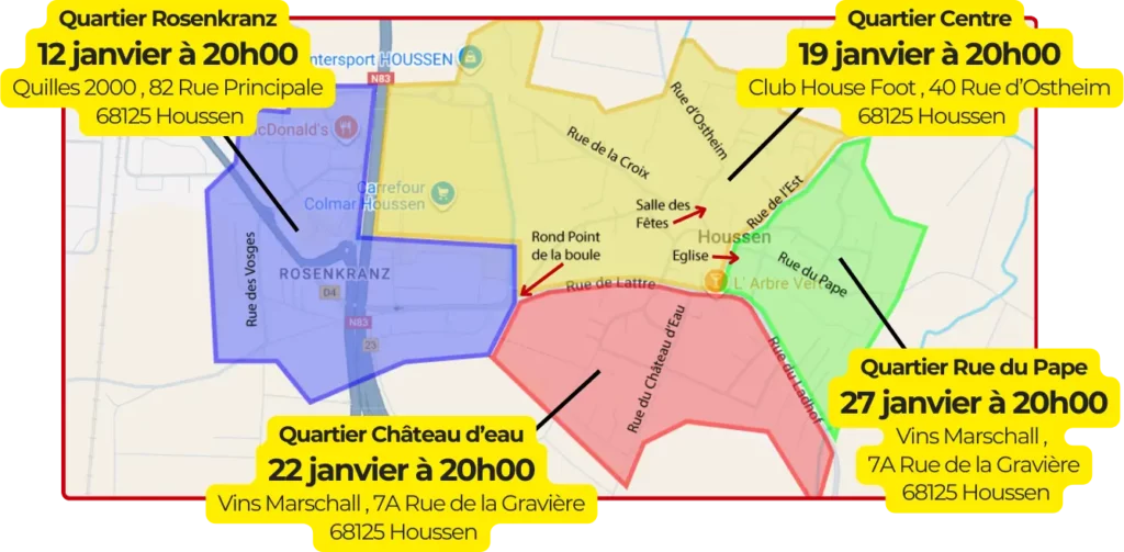 Si vous n’êtes pas disponibles à la date de votre réunion de quartier, vous êtes libres de venir à une autre réunion.